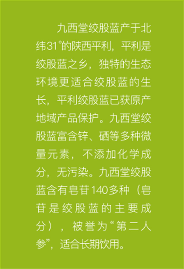 九西堂(tang)絞股藍與本公司(sī)建立長期穩定的(de)合作關系。工廠會(huì)✊根🏃據自己的産品(pǐn)的需要進行定制(zhi)制作,包括📧圖案💘等(děng)相應的一系列的(de)産品,其主要是以(yi)綠色為主,會顯得(dé)相當的有設計感(gǎn)。